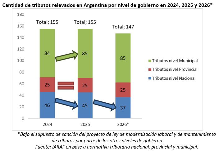 De aprobarse la eliminación de impuestos del proyecto de modernización laboral, la cantidad de tributos de Argentina se reduciría desde 155 a 147